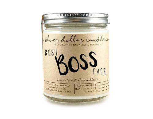 You can choose a bit different gift as the occasion calls for it. Try to find a nice scented candle with a decent label like "best boss ever". The sophisticated look of the candle makes it suitable for an office desk.